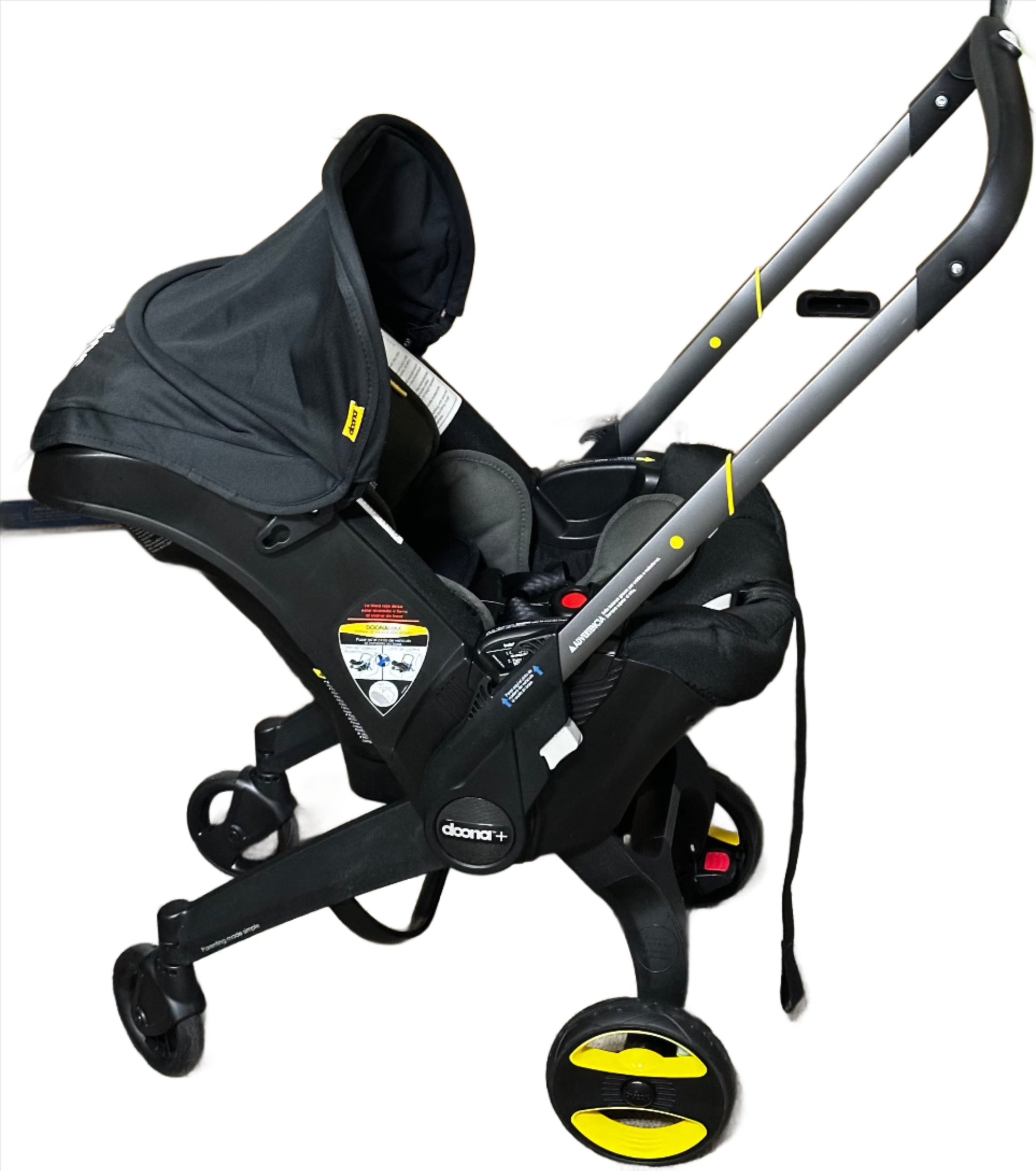 - Doona Car Seat - From car seat to stroller in seconds! One simple motion operation. Features a 5-point harness, adjustable handlebar (also acts as an anti-rebound bar inside the car) and 3 Layer Side Impact Protection.